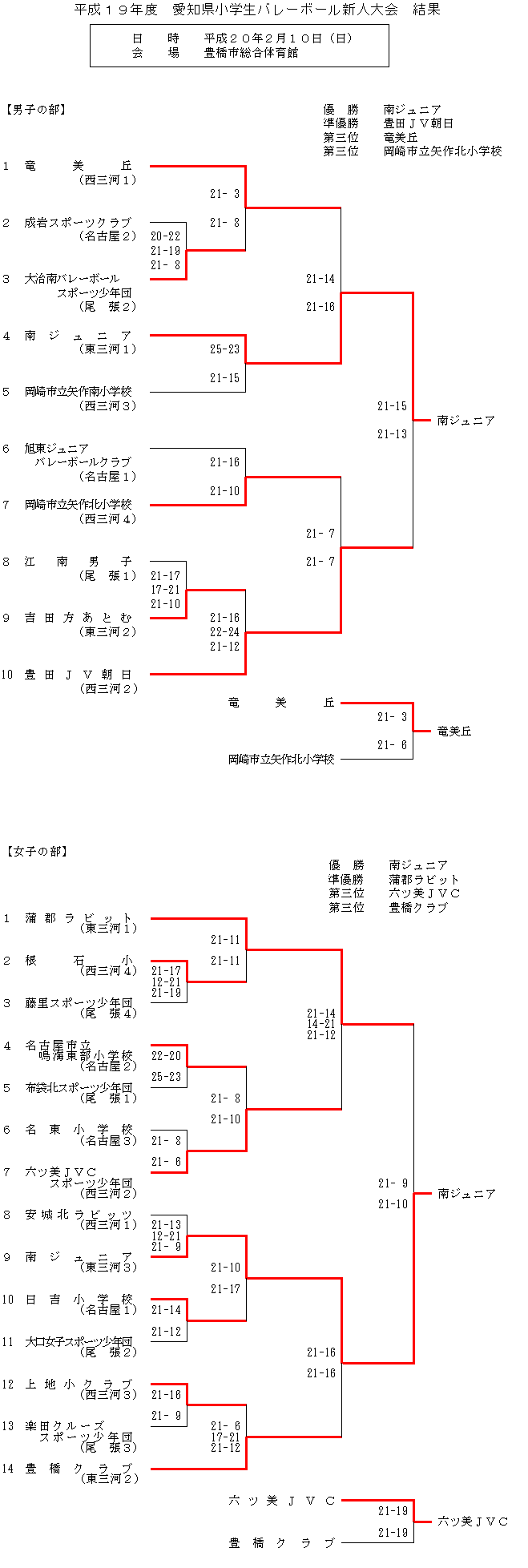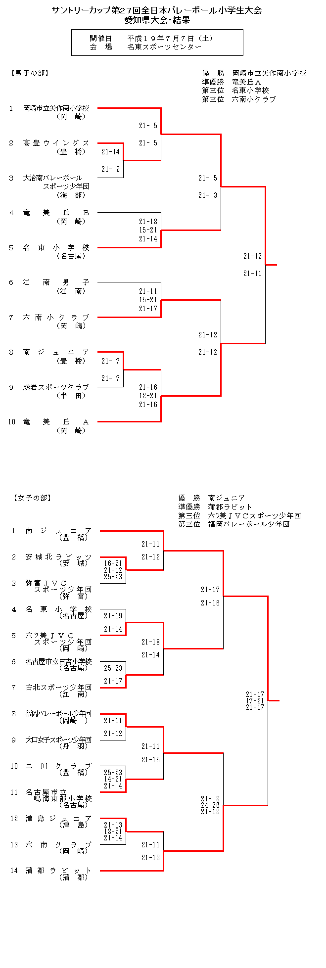 サントリーカップ愛知県大会 試合結果